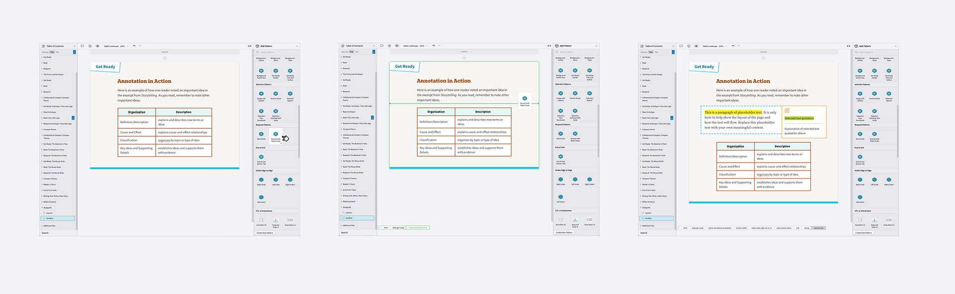 ↓ The following patterns, with variations, are a glimpse at what is available to HMH product teams after the system was created.